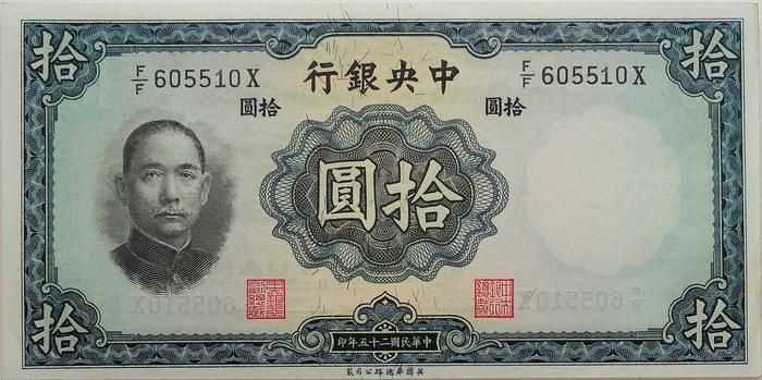 3. Währungseinheit von Taiwan (Republik China) seit 1949, 1 Yuan (Neuer Taiwan-Dollar) = 10 Jiao (Chiao) = 100 Fen.