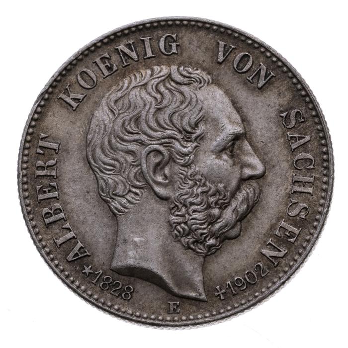 1. Silberne Scheidemünze (900⁄1000 fein) des deutschen Kaiserreichs, Feingewicht 10,0 g, Rauhgewicht 11,111 g; Rs. Porträt des jeweiligen Bundesfürsten bzw. Wappen der betreffenden Freien Stadt, Vs. Reichsadler, Riffelrand.