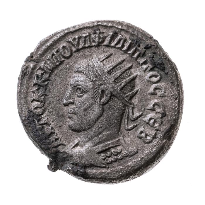 2. Silbermünze des persischen Sasaniden-Reichs von 226 bis 651 n. Chr. im Durchschnittsgewicht von 3,9 g. Die Münzen
